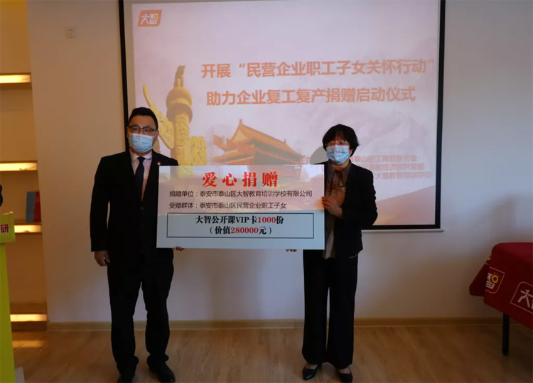 儀式上,大智泰安區(qū)域為泰山區(qū)民營企業(yè)子女捐贈價值28萬元大智公開課。張玲一行對此次捐贈活動給予了高度認可,對大智的社會責任擔當給予高度贊揚。泰山區(qū)組織部、泰安市電視臺對活動做專項報道。