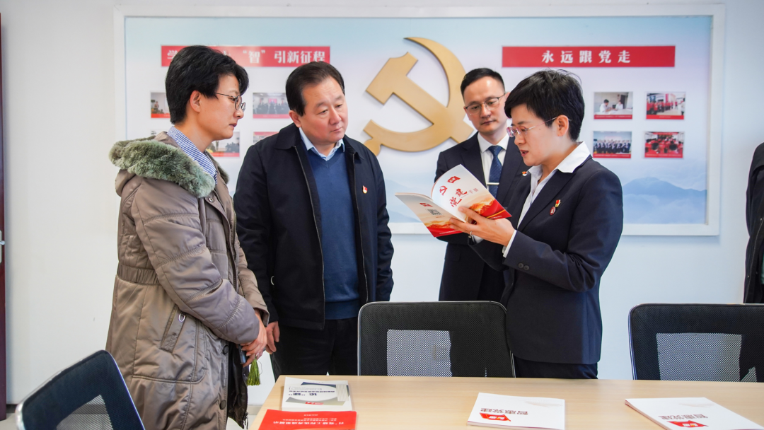 參觀黨員活動室,翻閱查看大智黨建相關(guān)資料。