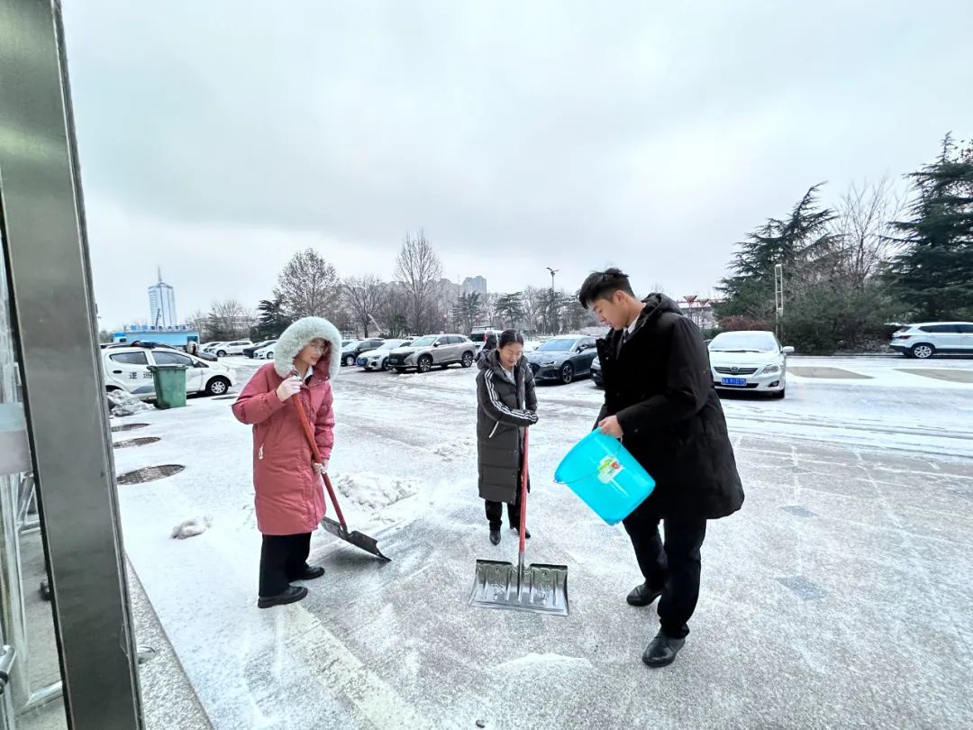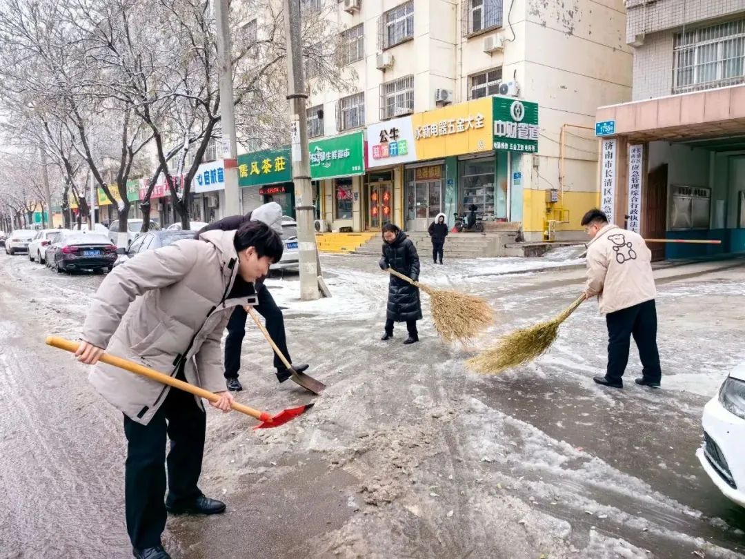 大家齊心協(xié)力,分工明確,全力清除路面積雪。忙碌的身影在冬天凜冽的寒風(fēng)中構(gòu)成了一道亮麗的風(fēng)景線。