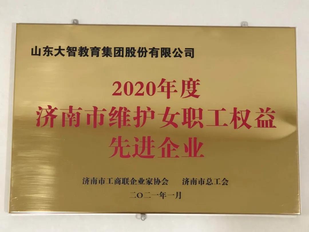 近日,大智教育集團榮獲濟南市工商聯(lián)企業(yè)家協(xié)會、濟南市總工會聯(lián)合頒發(fā)的2020年度濟南市維護女職工權益先進企業(yè)稱號。 大智工會自成