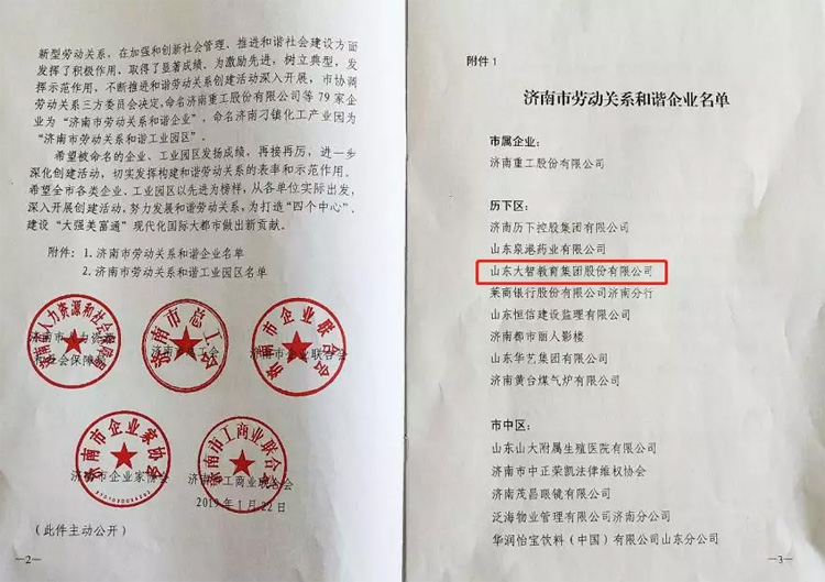 大智被命名為“濟南市勞動關(guān)系和諧企業(yè)”