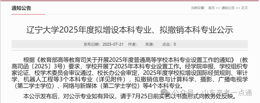 近日,遼寧大學(xué)、福建師范大學(xué)、江西農(nóng)業(yè)大學(xué)、西安郵電大學(xué)相繼發(fā)布關(guān)于2025年度調(diào)整本科專(zhuān)業(yè)情況的公示。遼寧大學(xué)7月21日,遼寧大學(xué)發(fā)布《2...