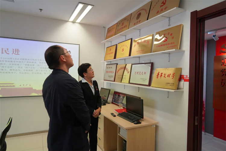 在集團(tuán)黨委書(shū)記王現(xiàn)芹的帶領(lǐng)下,紀(jì)宏偉一行首先參觀了大智黨建長(zhǎng)廊、大智黨校。隨后聽(tīng)取了王現(xiàn)芹就集團(tuán)黨委統(tǒng)戰(zhàn)相關(guān)工作的匯報(bào)。