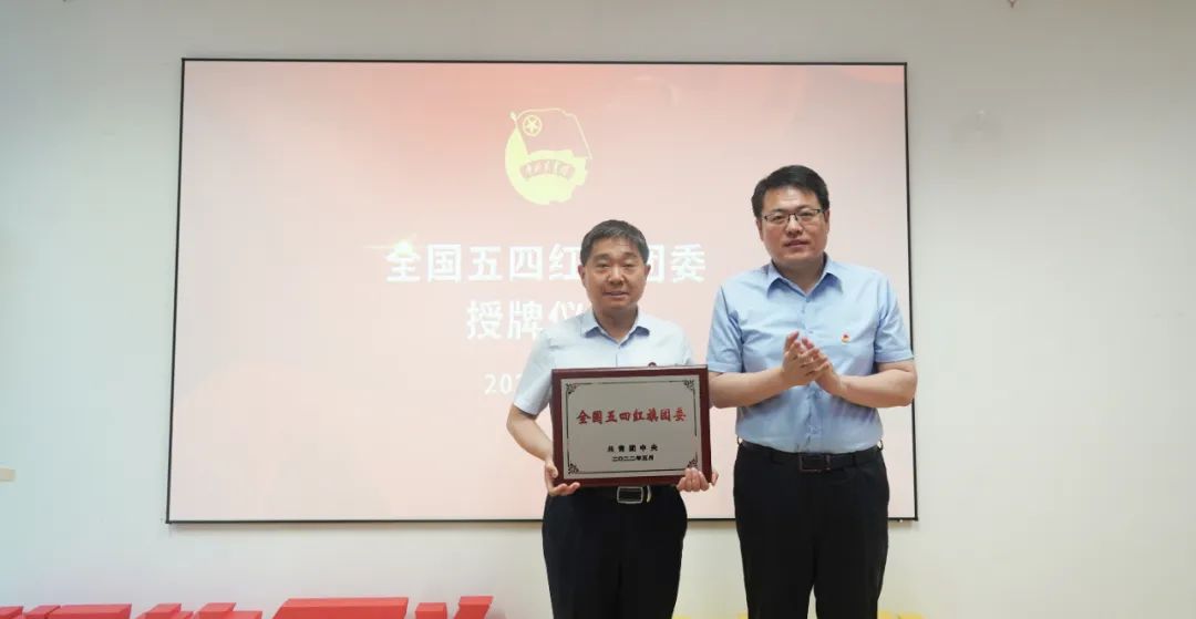 團(tuán)省委副書(shū)記張守珩為大智控股集團(tuán)團(tuán)委頒發(fā)“全國(guó)五四紅旗團(tuán)委”獎(jiǎng)牌。