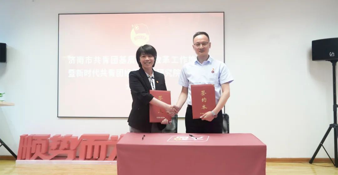 歷下區(qū)團(tuán)委書(shū)記羅茜與研究院院長(zhǎng)昌舉岡共同簽訂《合作協(xié)議》。